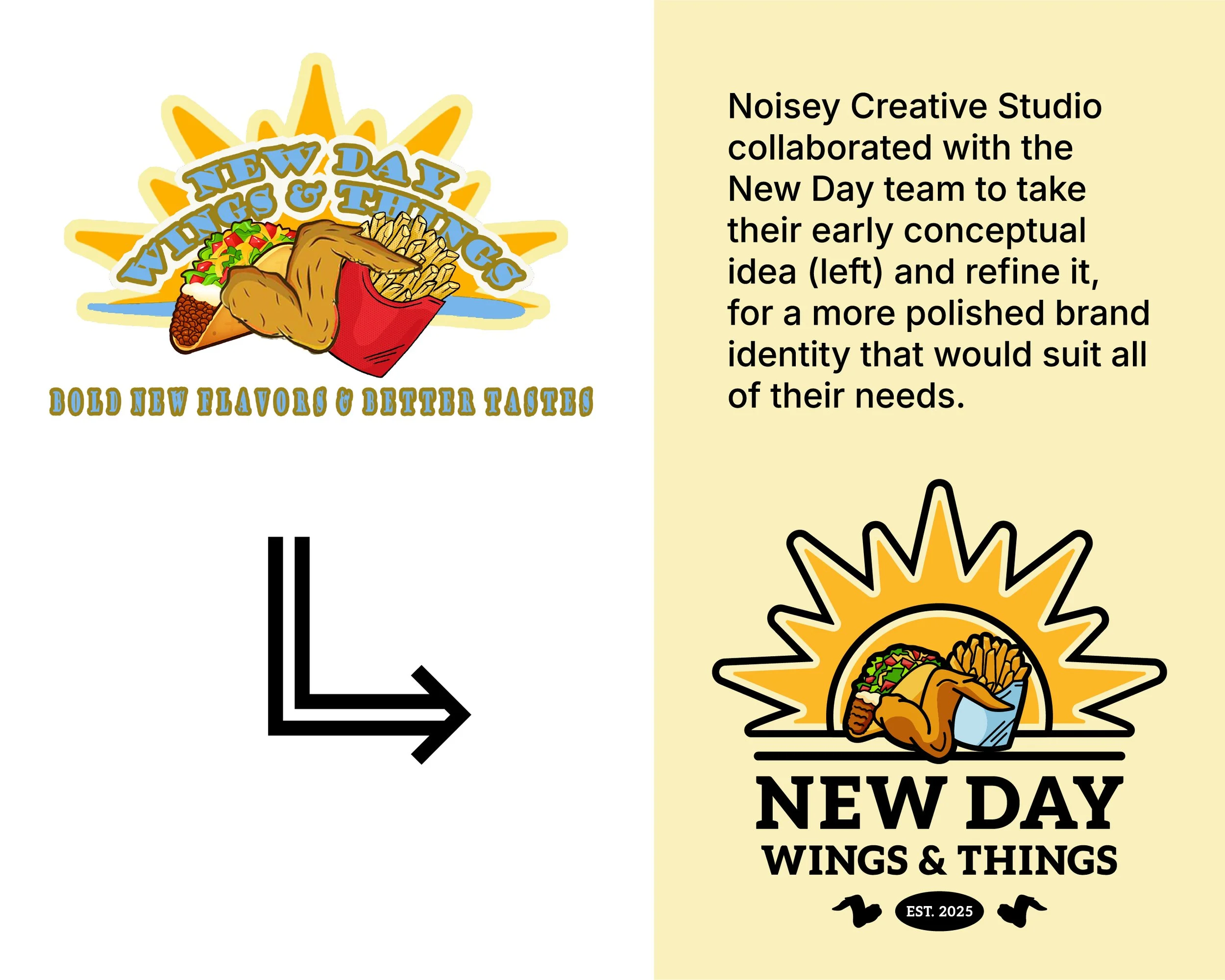 Through thoughtful collaboration, Noisey Creative Studio is helping position New Day Wings & Things as more than just a takeout restaurant—it’s a neighborhood staple and campus favorite designed to bring people together over great food.