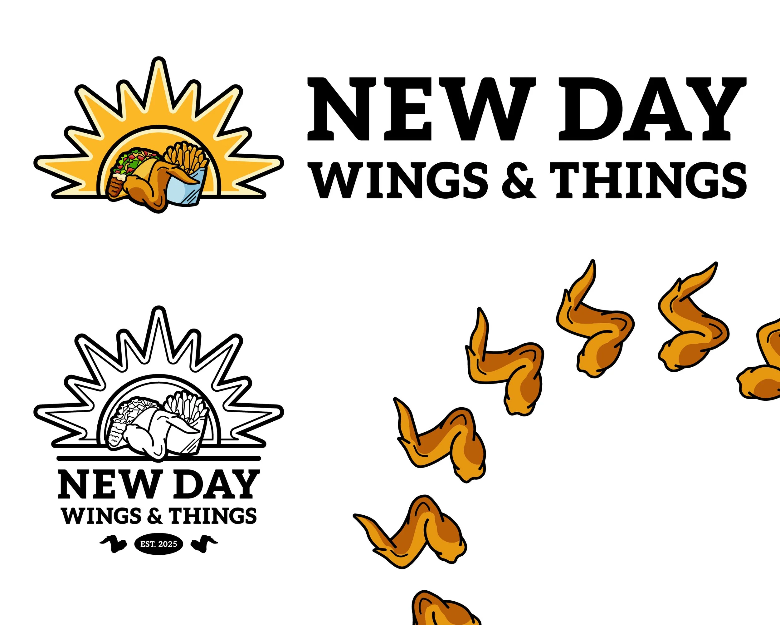 Noisey Creative Studio partnered with New Day Wings & Things, a family-owned takeout restaurant coming soon to Fort Valley, Georgia, to bring their vision to life through strategic branding, design, and environmental planning. Our team collaborated closely with owner Everett Jolly Sr. and his son, Gamal, to develop a strong visual identity and brand story that reflects their commitment to community, family, and bold flavors.